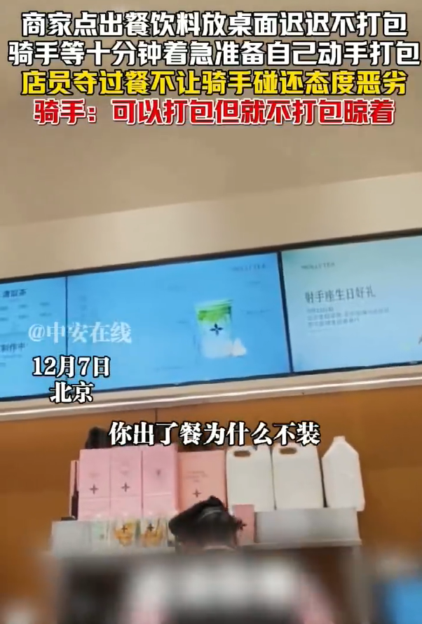 商家故意不打包让骑手干等,骑手干等十分钟引发热议12月7日,一段发生在北京的外卖取餐纠纷视频在网络上引发关注。视频显示,一名外卖骑手按订单到店取餐后,发现餐品早已制作完成,却被放在操作台上迟迟未打包。骑手在现场等待将近十分钟,期间多次观察到餐已备好但无人处理,配送时间不断被压缩,情绪逐渐...