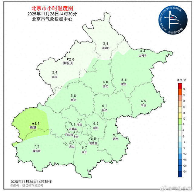 转自:北京日报客户端11月26日14:30,南郊观象台气温6.8℃(昨日同时次6.1℃),相对湿度35%,目前北京城区气温6~8℃之间